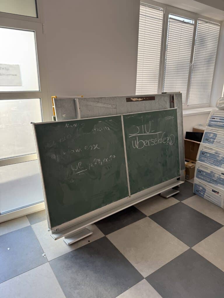 Wir tauschen einige Erfahrungen aus und laden die Schultafeln, die Fahrräder und einige medizinische Hilfsgüter aus. Der Wasserfilter bleibt auch bei der Karitas und soll Front nah zum Einsatz kommen. Natürlich sind die Sachen, die wir auspacken wollen unter den anderen Paketen versteckt und wir laden fast alles aus und wieder ein. Wir haben das Fitness Programm damit für der Tag erledigt.